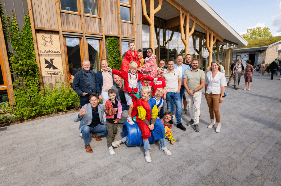 In mei knipte wethouder Piet Jan den Dikken samen met de leerlingen het lint door en ontvingen de kinderen symbolisch de sleutel van hun nieuwe school. Sindsdien is het gebouw in gebruik – en nu hebben we dit mooie project feestelijk afgerond.