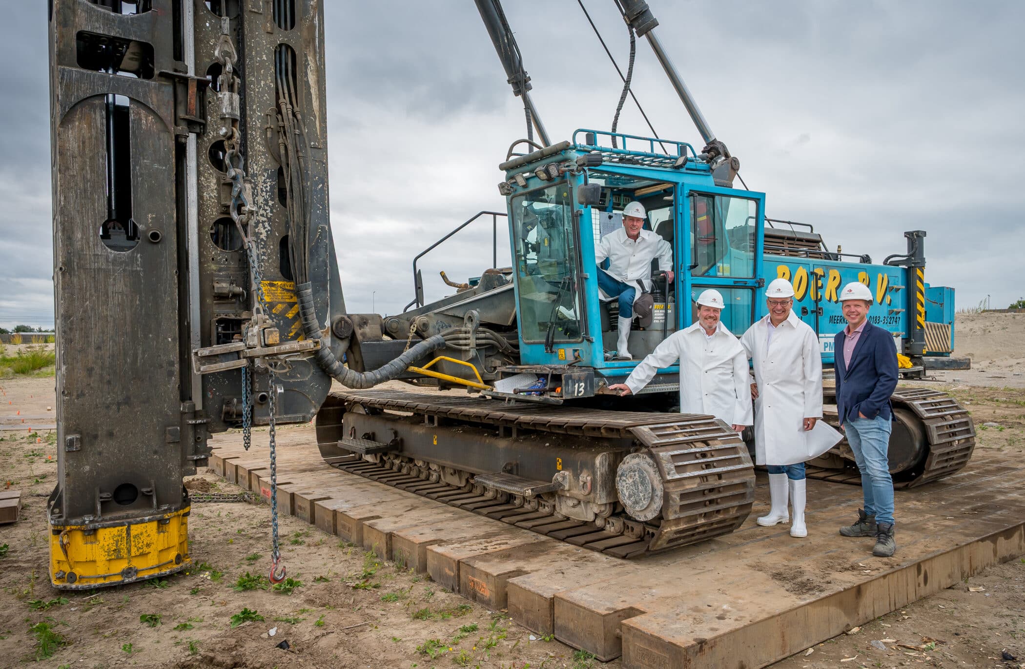 de genodigden toe, waarna wethouder Arco Bikker (Gemeente Molenlanden) de eerste paal sloeg. Ook Willem Botter van Helmacab Holland โ dat direct achter het huidige pand uitbreidt โ deelde zijn enthousiasme over het project.