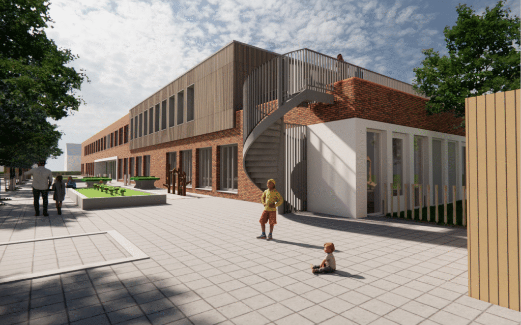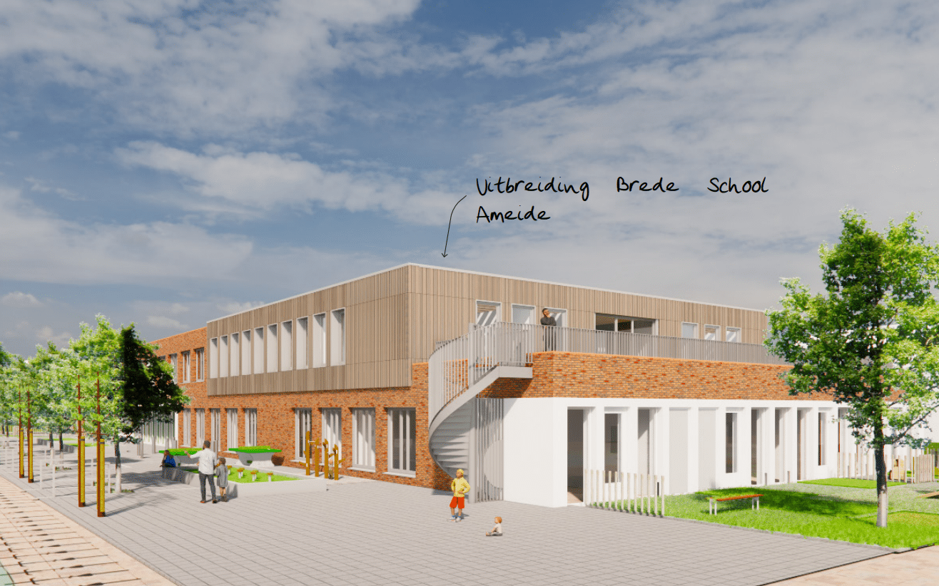 Na het bouwen van de huidige Brede School Het Liesveld in Ameide realiseren wij nu de uitbreiding: een extra verdieping met vijf lokalen en kantoren. Dat doen we in bouwteamverband, waarbij we vanaf het begin intensief samenwerken met onze partners. De voorbereidingen zijn gestart en in de herfstvakantie beginnen we met de bouw. Het ontwerp is van RoosRos Architecten en wordt uitgevoerd met duurzame installaties en biobased houtbouw.